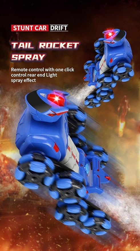 - Cool RC Remote Control Stunt Car. Rc car spits out smoke (water vapor) out the back that it also lights up so it makes it look really cool. The wheels do a whole lot of contorting into all sorts of combinations. The rc stunt car can make realistic roar engines, speed up, braking sound and dazzling lights when it gallops.