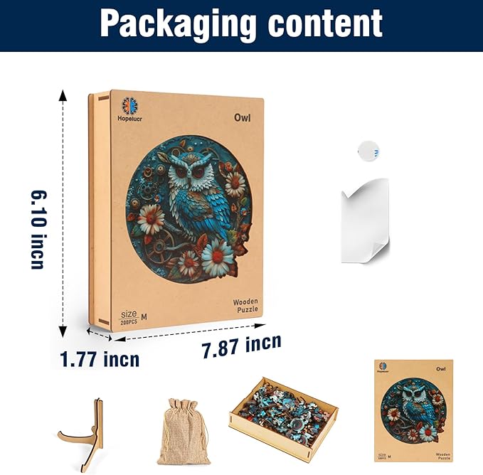 - 【CHALLENGING WOODEN PUZZLE】Take pleasure in the retro owl wooden puzzles. Measuring 11.49" x 11.49" (29.2cm x 29.2cm) and consisting of 200 pieces, ideal for adults and kids 12+