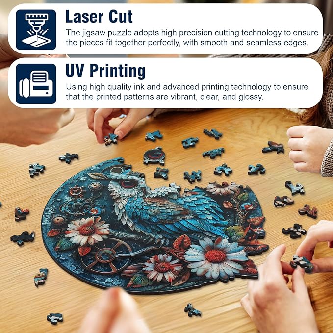 - 【PREMIUM QUALITY】The adult wood puzzle is made of high-quality 5mm high-density board, sturdy and durable, without bending or breaking. The high-precision UV printing and laser cutting technology ensures vibrant colors, clear printing, and smooth edges without burrs. The precisely cut wooden pieces interlock tightly, making them less likely to scatter and easier to move around. A perfect choice for puzzle lover