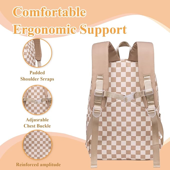 - Wonderful design: Back to school with this brown checkered pattern backpack, it will make you kids to be the hot topic of playground for its fun, personalized and fashion pattern , let your kids become more confident and help them adapt to kindergarten life easily, raise and capture your little one's imagination and curiosity about school at the same time.