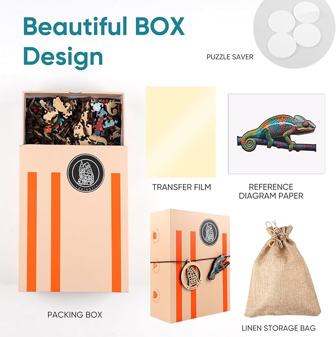 - 【Unique Shape Puzzles】200 pieces Chameleon wooden puzzle has gorgeous colorful painting, adopt advanced laser-cut art. Each puzzle pieces interlock precisely. Our wooden puzzles are cut into unique shapes like animals and plants