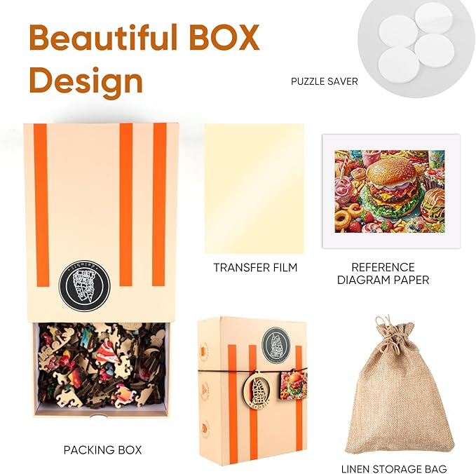 delobil Wooden Puzzles for Adults, Hamburger Jigsaw Puzzle 200 Piece, Unique Shaped Wooden Puzzles Beautiful Gift Package, Creative Birthday Gift for Friends and Family 11.7 * 8.86 in Medium