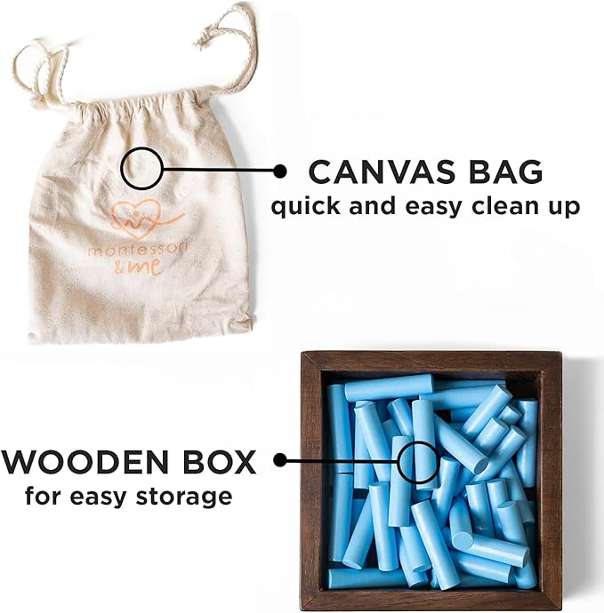 - STORAGE BAG AND BOX INCLUDED: The storage box neatly holds all 10 wooden counting boards and the canvas drawstring bag holds the pegs, making it easy to present this activity on a shelf or take it on the go.
