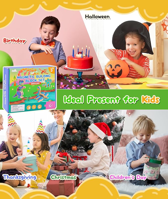 - Magnetic Connection: Each piece has strong magnets, making assembly simple and secure. Even young children can easily create various dinosaur shapes and imaginative models.