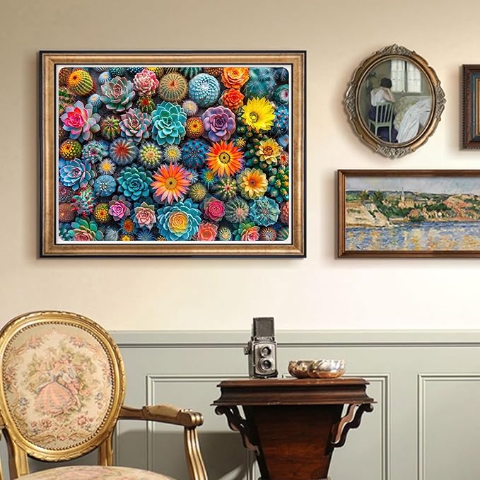 Puzzles for Adults Cactus World Wooden Puzzles, 300 Pieces Unique Shaped Succulent Jigsaw Puzzles, Birthday for Adults and Kids, Fun Family Game 14.9'' x 11.2'' Medium Size