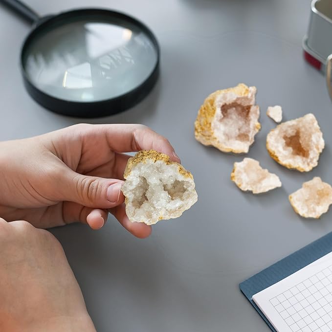 - UNLOCK HIDDEN TREASURES: Crack open 25 natural Moroccan white geodes of various sizes — small, medium, and large — to reveal stunning crystals. An exciting hands-on experience that turns kids into real geologists!