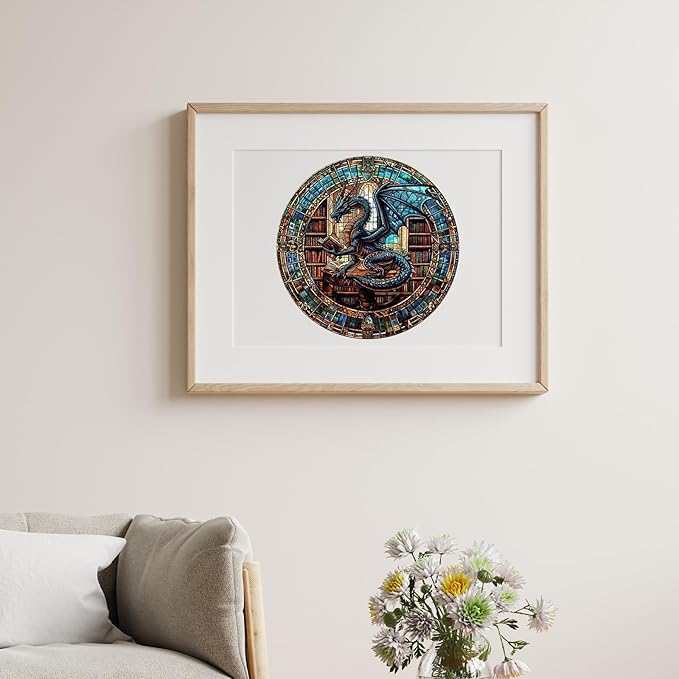 Jigfoxy Wooden Puzzles for Adults, Dragon's Library Wood Puzzles Adult, Unique Animal Shape Wooden Jigsaw Puzzles for Adults, Birthday Gifts for Puzzle Lovers, Family (S-8.5 * 8.5in-100pcs)