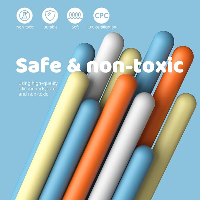 - Safe & Portable Play - Crafted with CPC certified premium non-toxic silicone, this toy includes an intricate silicone board and 20 silicone rods, all packaged in a colorful box. This ensures safe and convenient play anywhere. An ideal gift, offering a therapeutic and satisfying activity for all ages.