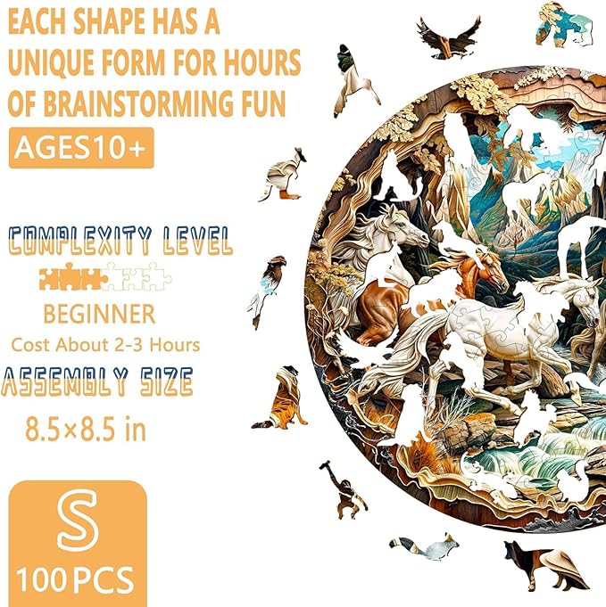 Wooden Puzzles for Adults, 3D Visual Effects Running Horses Wooden Jigsaw Puzzles for Adult, Wood Puzzles Adult, Cool Puzzles, Unique Gift Idea, Wall Art Canvas Puzzle (S-8.5 * 8.5in-100 Pcs)