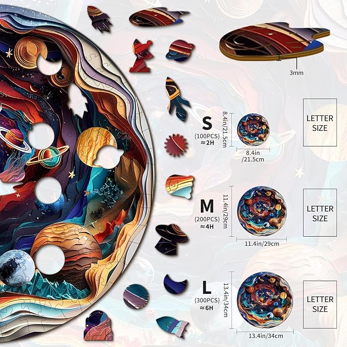 Wooden Puzzle for Adults-3D Visual Effect Universe Unique Shape Advanced Wooden Jigsaw Puzzle for Adults and Kids,Best Gift,Wood Puzzles,Challenge Wooden Jigsaw Puzzle (Universe, Small)
