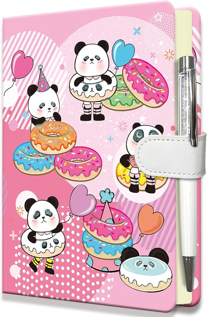 Panda & Donut Diary for Boys & Girls - Kids' Birthday Gift, Journal w/Pen & Magnetic Closure, 192 Pages Lined Hardcover Journal, 5.3"x7.5"