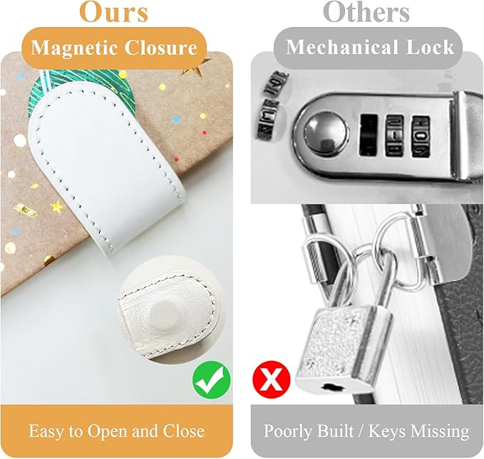 - Built for Daily Use: Featuring a durable, water-resistant hard cover, a sparkling crystal-topped pen, and a magnetic closure that keeps everything secure and doubles as a pen holder for added convenience.