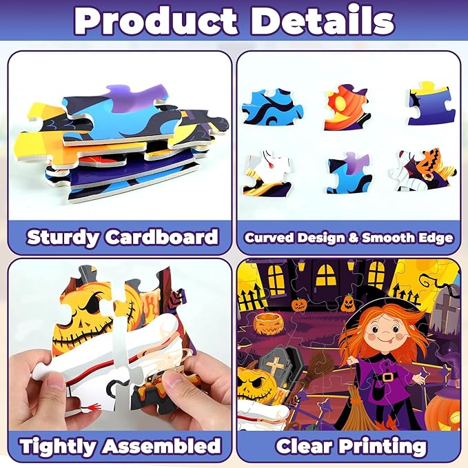- Spark creativity and imagination: Our puzzle provide a platform for kids to express their creativity and imagination. As they work on the puzzles, children can create their own stories and adventures in the haunted house and fall scarecrow world.