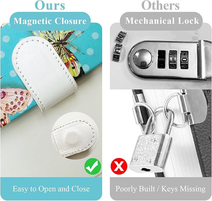 - Built for Daily Use: Featuring a durable, water-resistant hard cover, a sparkling crystal-topped pen, and a magnetic closure that keeps everything secure and doubles as a pen holder for added convenience.