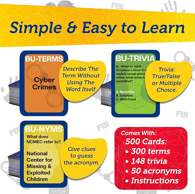 - EDUCATIONAL AND ENTERTAINING: Learn while you play with over 500 cards covering authentic FBI-inspired material. No timer needed—great for classrooms, family bonding, or group learning sessions.
