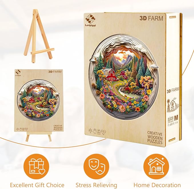 - [Wooden Puzzles for Adults-Valentines Puzzle] - This wooden jigsaw puzzle shows a beautiful scene of farm life at sunset in three dimensions, with colorful flowers and trees, mountains, and streams, creating a peaceful and beautiful living atmosphere! The wooden jigsaw puzzle consists of 290 unique irregular shapes, high difficulty wooden puzzles are very challenging and make puzzle time more fun and enjoyable. Our store puzzles are available in 3-4 sizes to meet the needs of puzzle enthusiasts of all levels.
