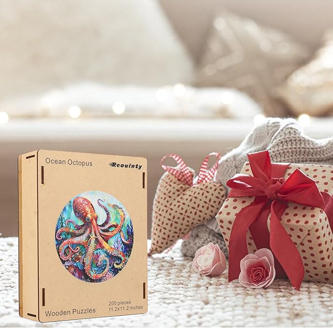 Wooden Puzzle for Adults 200pcs, Octopus Wooden Jigsaw Puzzles, Unique Shape Animal Adult Puzzles, Irregular Wood Puzzles Best Gift for Adults and Kids Family Game(11.2 * 11.2 in)