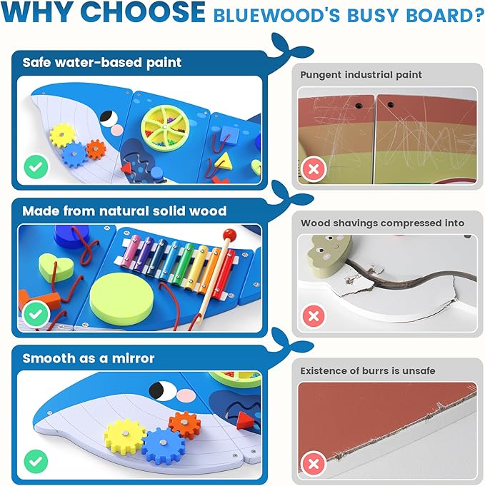 BlueWood Whale Wall Busy Board Panels, Toddler Learning Activity Center, Montessori Philosophy Sensory, Educational Toys, Conducive to All-Round Development