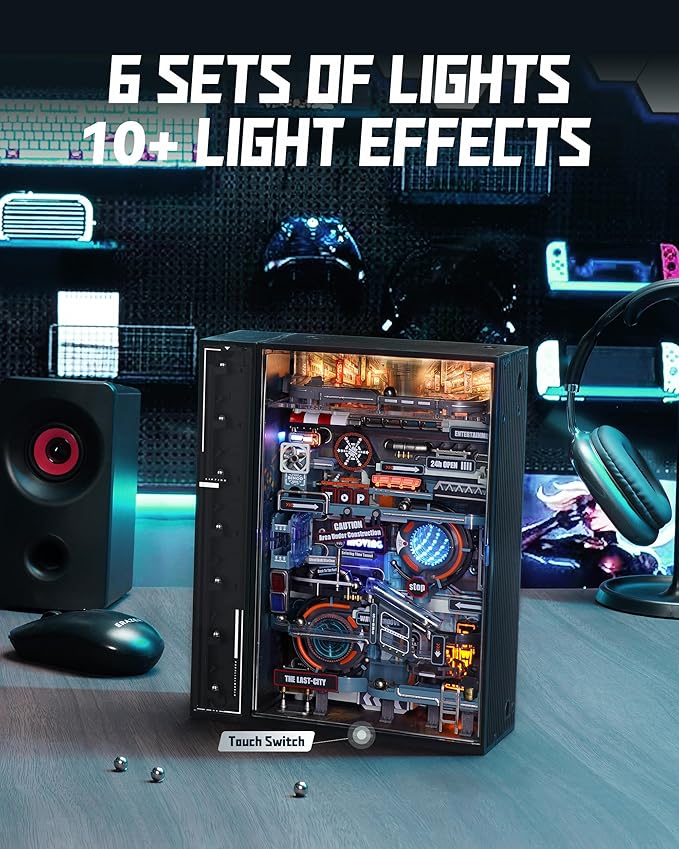 - 【LIGHTING EFFECTS】We've equipped the miniature puzzle town base with a glowing effect. The lights offer two modes, one is a steady glow, and the other is a blinking effect.Whenever a ball passes by the sign, the lights will flash.The lights are equipped with an infrared sensor and feature 10 different colors.