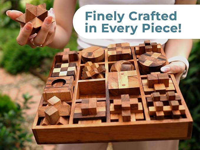 - Premium Handcrafted Wood: Smooth sanded pieces and sturdy construction create satisfying tactile feel and lasting durability across wooden mind puzzles and classic wood block puzzle challenges.