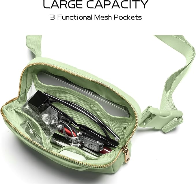 - [Keeps your stuff in order] To help you organise your daily essentials and keep everything you need close to hand, the Everywhere belt bag has two zipped pockets and three mesh pockets. It holds your cellphone, wallet, keys, lipstick, sunglasses and other essentials.