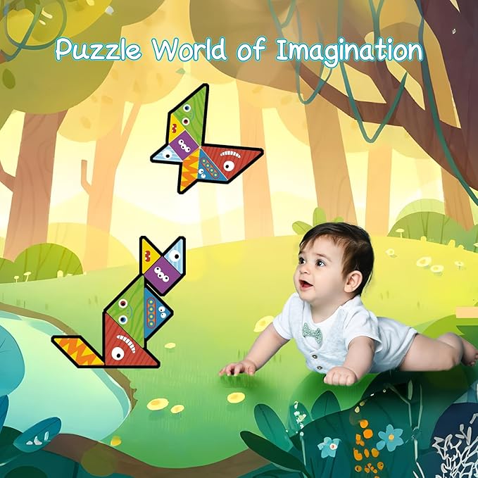 - Montessori-Inspired Learning: Designed with Montessori principles in mind, this toy encourages self-directed learning and helps develop fine motor skills, hand-eye coordination, and problem-solving abilities. The monster-themed magnetic tangram integrates 21 challenge patterns and three difficulty levels, making it more than just a game. It's a powerful tool that stimulates children's imagination, creativity, and logical thinking. The tangram pieces magnetically adhere to the whiteboard, adding another layer of interactive play and learning.