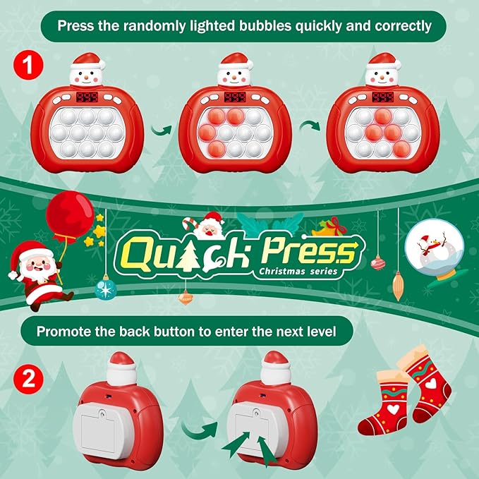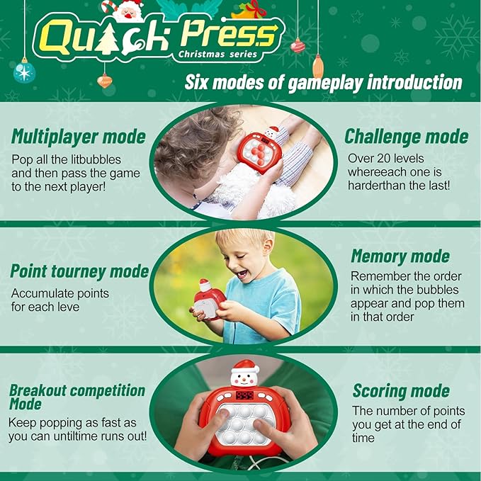 - 2024 Upgraded Christmas Gifts for Kids: Looking for a captivating toy gift for kids? Get ready for endless hours of fun with this pop fidget toy ! With multi modes, this handheld fidget toy is perfect for all ages.Simply install then lights up dancing bubble at now!Addictive classic press bubble game meets fast electronic game!