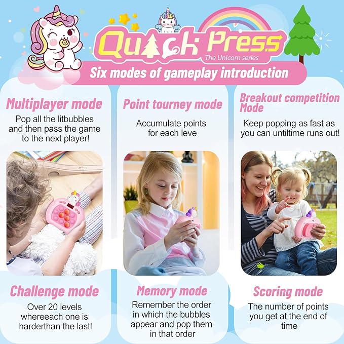 - 6 Fun Game Modes: This 2024 latest quick push game comes with 6 game modesIn, In addition to the single-player game modes (Mission, Breakout, Memory, and Score), our fun light-up sensory fidget toy has been upgraded with more multiplayer game modes.improves concentration by pushing quickly to break through levels with lights & music, promoting players' sensory development, making it a perfect toy for boys girls aged 3-12.