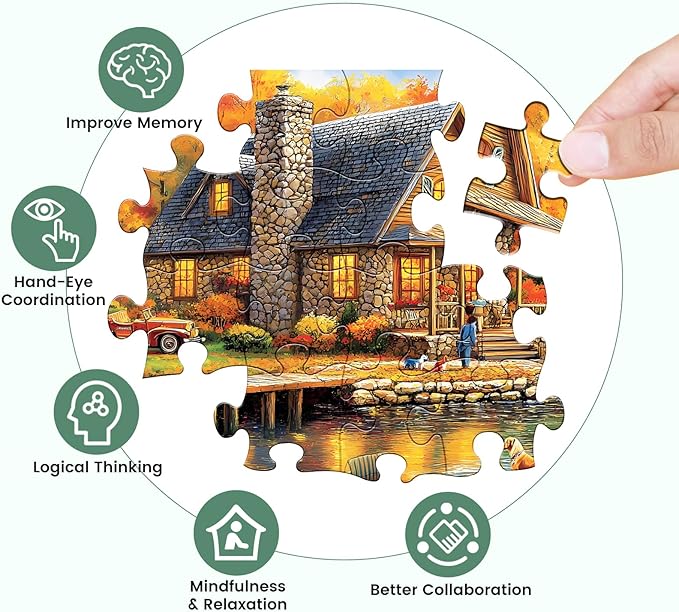 - 300 Piece Puzzle: This 300 piece puzzles for adults is composed of yellow forest, wooden house and pond. The vivid images and bright colors provide you with a rich visual experience! During the process of completing the jigsaw puzzles, it feels like you are in a forest of autumn, which is a great way to relax and relieve stress
