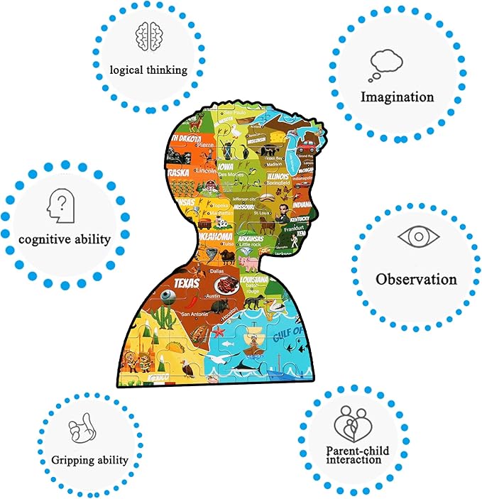 - Map of the United States Puzzels for Kids -- Every Package Includes Puzzle Pieces,a Tin Box, An Original Picture.Sturdy Boxes Are Perfect For Gifting,Stacking And Storage.Puzzles Can Bring Entertainment And Fun Time To Everyone!and Help Children Gain A Sense Of Accomplishment In The Puzzle Process.
