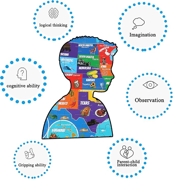 - High Quality Materials: The Map of the United States puzzles are printed by eco-friendly oil, original hand-painted pictures, with bright and delicate colors, providing you with an excellent visual and high aesthetic experience. The rounded edge is safe for your little one. The puzzle pieces are carefully cut so that each piece fits together nicely.