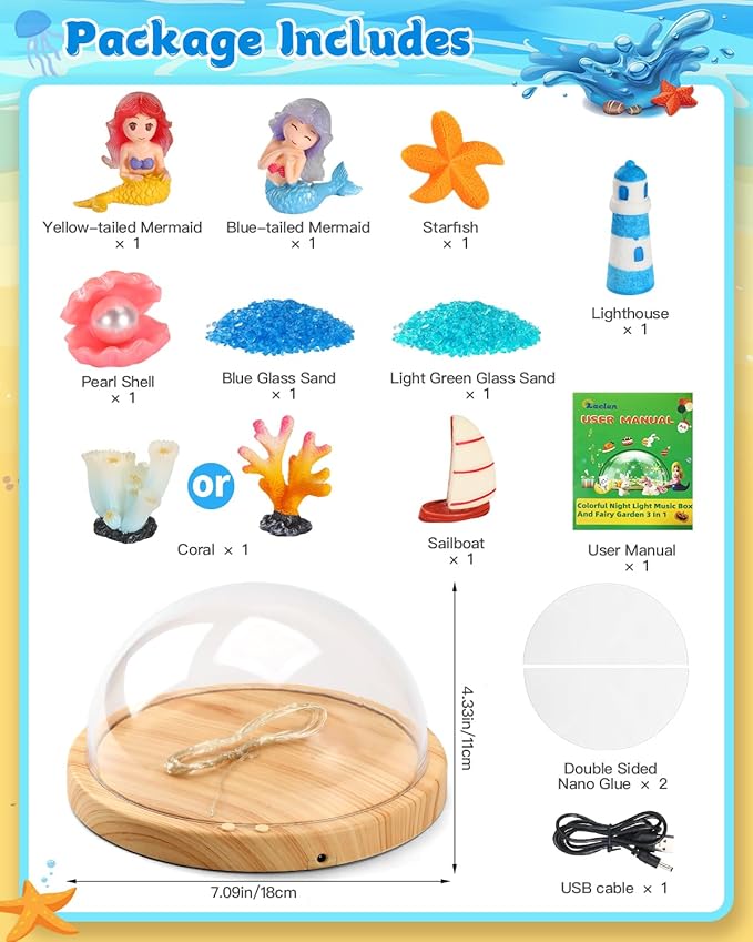 - 【Enjoy DIY fun】:DIY kits for kids contains everything you need to make mermaid nightlight, Children can customize the craft night light in any way they want, and when the night light project is complete, they will feel very proud of themselves and marvel at the beauty and magic of the light. Children will be happier when music plays,the 12 pieces of music can be switched according to their own preferences, let the children enjoy this feast of lights and music