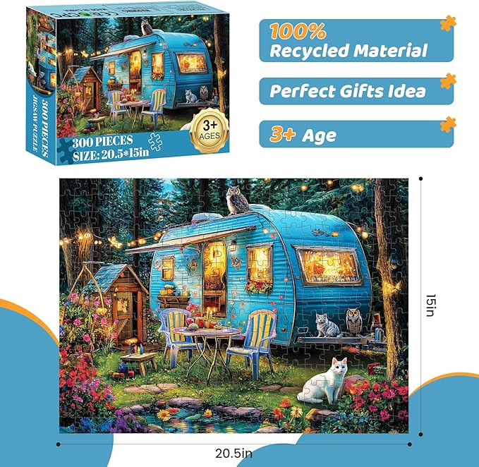 300 Pieces Puzzles for Adults | Camper Cat Jigsaw Puzzles | Large 300 Piece Puzzle for Children Adults Seniors | Sturdy,Safe | Engaging & Educational Toys Great Gift for Boys Girls 20.5 x 15 in