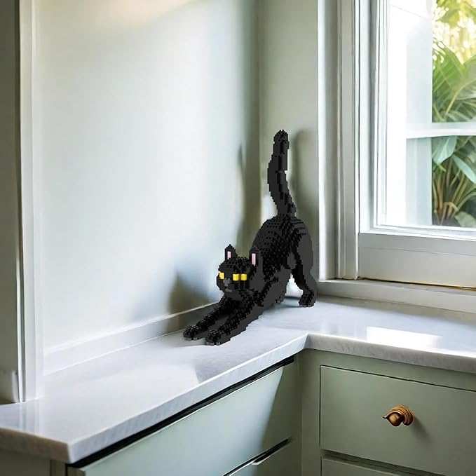 Larcele Cat Micro Building Blocks Animal Set, DIY Mini 3D Building Toy Bricks Kit,999 Pieces KLJM-05 (Black Cat)