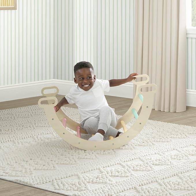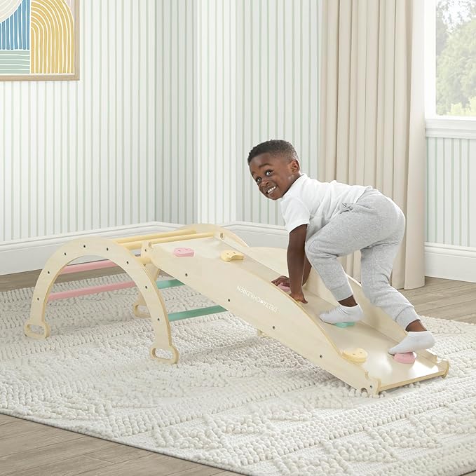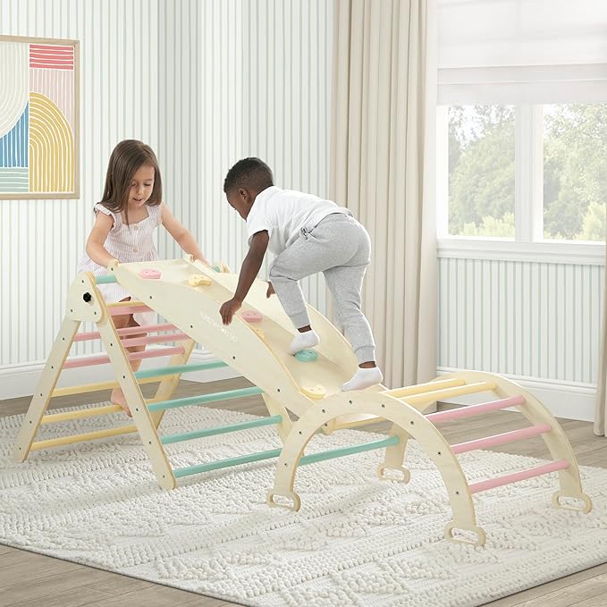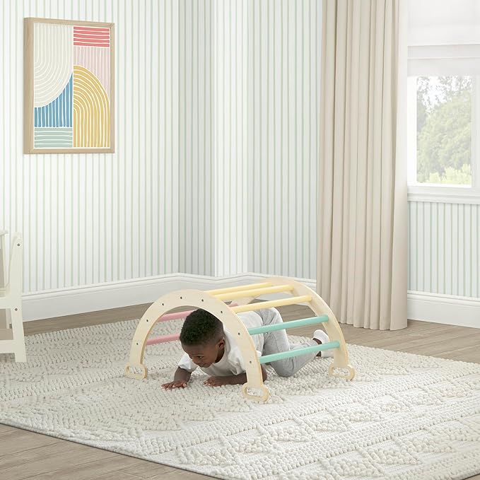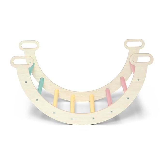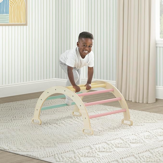 - STURDY WOOD CONSTRUCTION: Made with sustainably sourced natural wood that stands up to years of use | Lead and phthalate safe, this climber features a non-toxic finish | Climber features pastel rainbow colors for added appeal