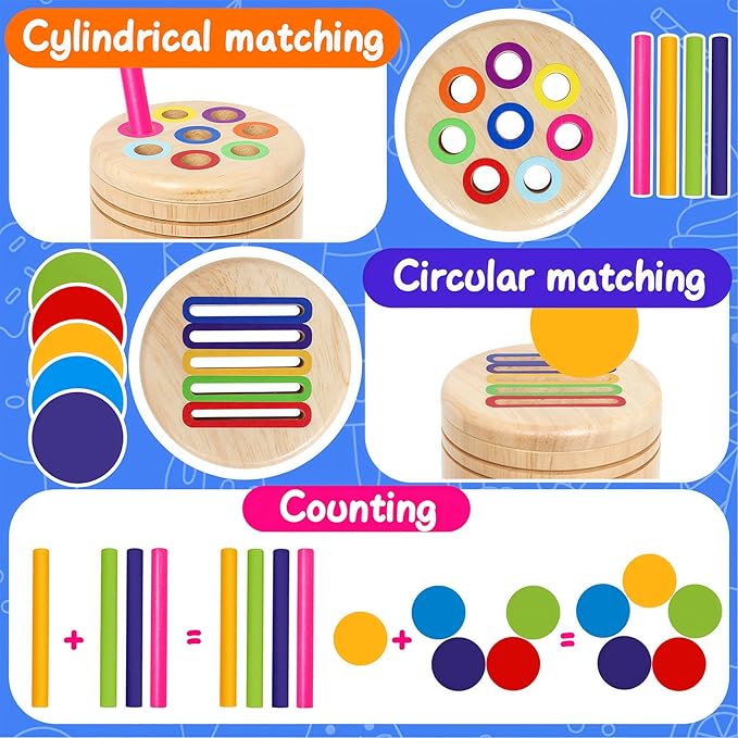 - Kid-safety Standard Learning Toy - Made of wood, standing with rough throwing. Especially good for toddlers. This soring bin features vibrant colors and size for little hands. Each pins are smooth and grasped easily