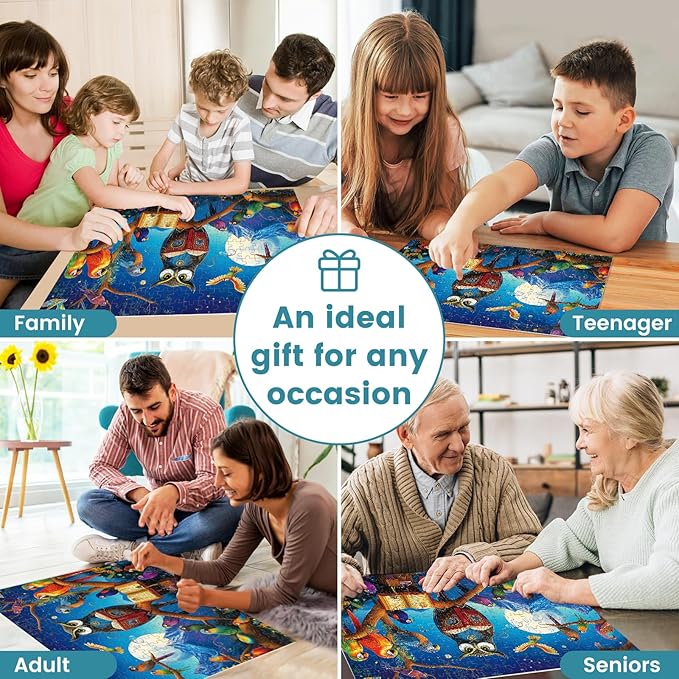 - [bird Jigsaw Puzzle]: This 300-piece adult jigsaw puzzle depicts a vivid scene: colorful parrots gather around an owl, who has a magical book floating in front of him and wise eyes watching you. This charming design promises a relaxing and enjoyable puzzle experience!