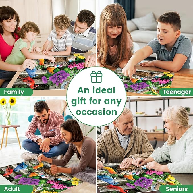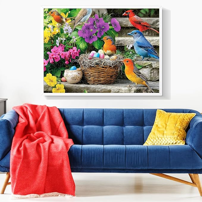 - [Hummingbird Jigsaw Puzzle]: This vibrant 300-piece adult jigsaw puzzle features hummingbirds in various colors, along with colorful bird eggs and flowers. The image captures the beauty of spring and life, making it an ideal choice for a relaxing and enjoyable puzzling experience!