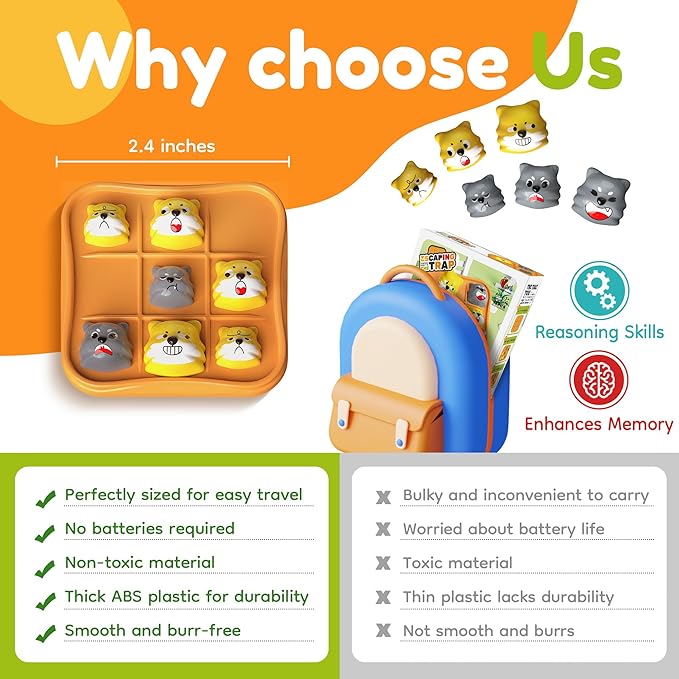 - Best Service - As parents, we understand that the safety of our children and the quality of their Tic Tac Toe toys are of utmost importance. We want to ensure you’re completely satisfied with your purchase. If you encounter any issues such as missing parts, broken items, or anything not working, please feel free to contact us through Amazon. We will do our best to provide a satisfactory solution.
