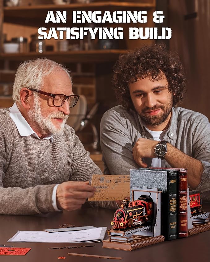 Rolife 3D Puzzles for Adults DIY Book Nook Kit Wooden VintageTrain Decorative Bookends 6.5" Model Building Kit Crafts for Adults Gifts for Boys Girls