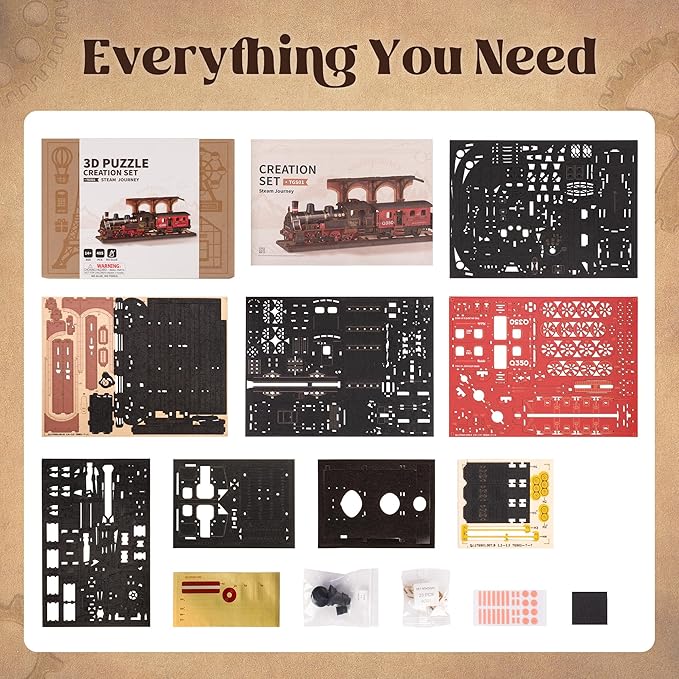 ROBOTIME 3D Puzzles for Adults Wooden Puzzle DIY Model Steampunk Train Kit to Build Wood Craft Kit Toy Hobby Gift Home Decor (Steam Journey)