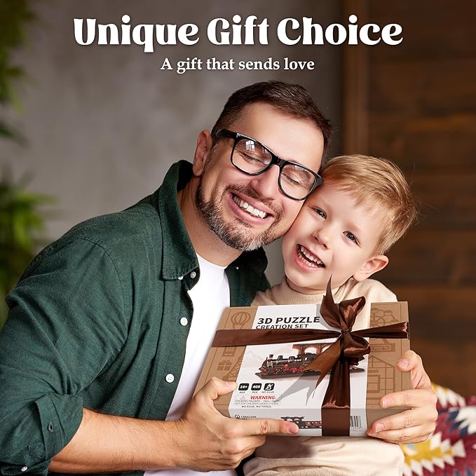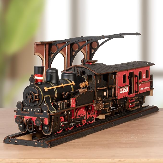 - 【ROBOTIME Steam Journey】The 3D wooden puzzle is detailed replica of a classic steam train, capturing the essence of steam-powered mechanical culture with its vintage design and color.