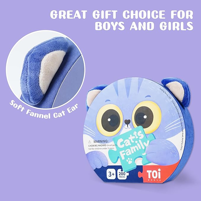TOI Cats Puzzle for Kids Ages 3-5, 200 Pieces Jigsaw Puzzles for Toddlers with Cat-Shaped Portable Box, Preschool Learning Cat Game for Boys & Girls Gift