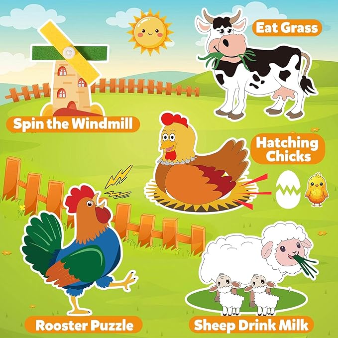 - Develop Cognitive & Sensory: The baby busy book adopts the Montessori educational method. Explore a world of shapes, colors, farm animals, fruits, vegetables. With interactive features like finger toys, spinning windmills, feed the cows grass engage sensory development and cognitive skills.