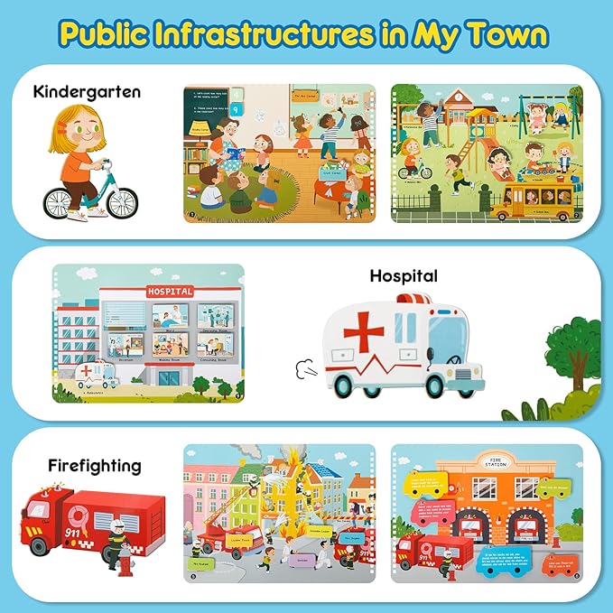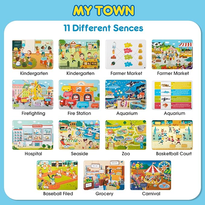 - πππππππ ππππ ππππ ππππ ππ ππππππ - This preschool busy book introduces 11 scenes in town: Kindergarten, farmers market, fire station, aquarium, hospital, seaside, zoo, basketball court, baseball field, grocery, and carnival. This toddler activity book helps kids simply learn about various places in town.