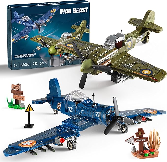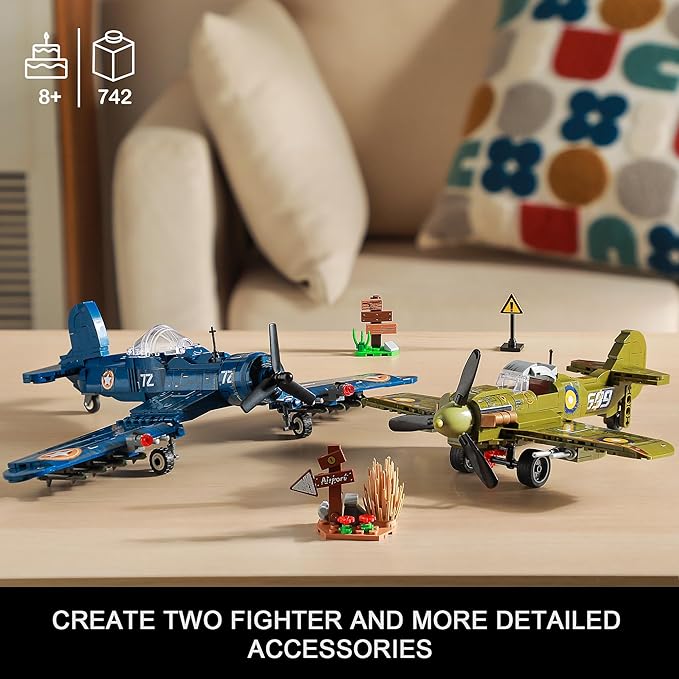 WW2 Military Plane Building Sets Compatible with Lego, Create US F4U & UK Spitfire Fighter Jet Models Toys, Great Army Airplane Aircraft Gifts for Boys Kids