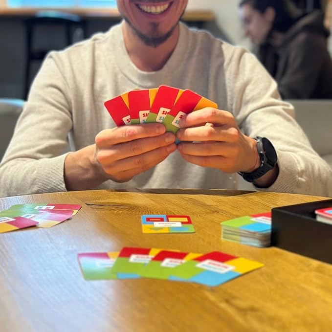 - This is one of those card games for adults that will mess with your mind using a mix of colors and shapes.It seems like a simple match game, but it’s definitely not
