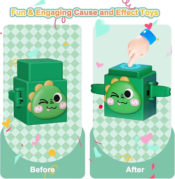 - Toddler Sensory Development Toys: Our 6 in 1 kids stacking toys are designed to stimulate your baby’s senses, the bright colors and cute shapes of these blocks captivate attention while promoting hand-eye coordination and fine motor skills. Press the top, it will make funny movements, swinging its arms, wings, ears, and Tail. 6 cute animals in total for play: Chicken, penguin, tiger, cow, lion and dinosaur