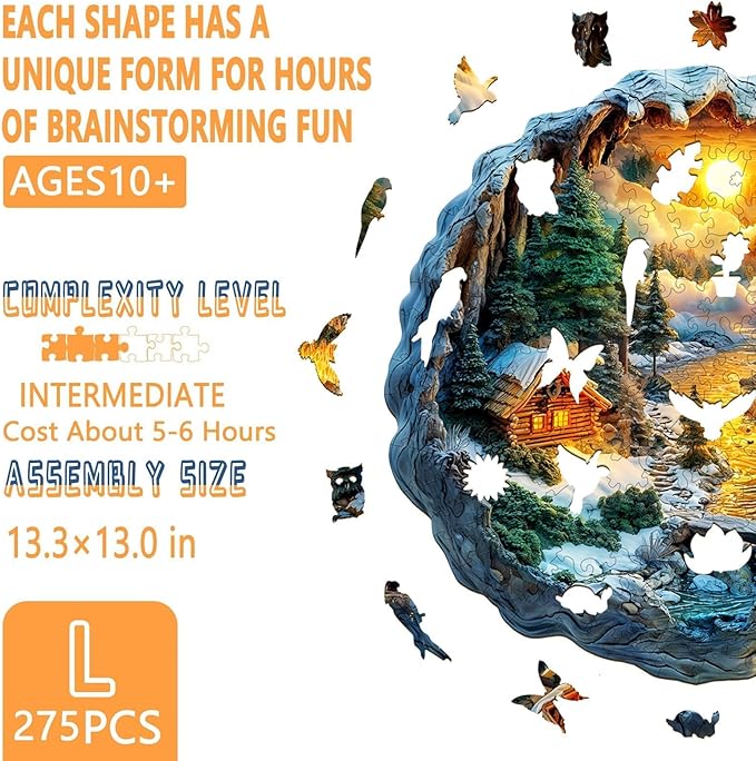 - ๐ฒ Winter Scene Themed Puzzle Set - This wooden puzzle depicts a peaceful and beautiful winter landscape. The warm sun shines, and the first snow begins to melt. A small house sits in the woods, with a stream flowing slowly in front of the door. The whole picture shows a magical 3D visual effect on a flat surface. Come and find special beauty in wooden toys!