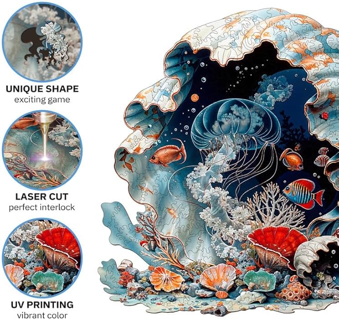 Jigfoxy Wooden Puzzles for Adults, Seashell Wood Puzzles Adult, Unique Animal Shape Wooden Jigsaw Puzzles for Adults, Birthday Gifts for Puzzle Lovers, Family(L-13.4 * 13.4in-320pcs)
